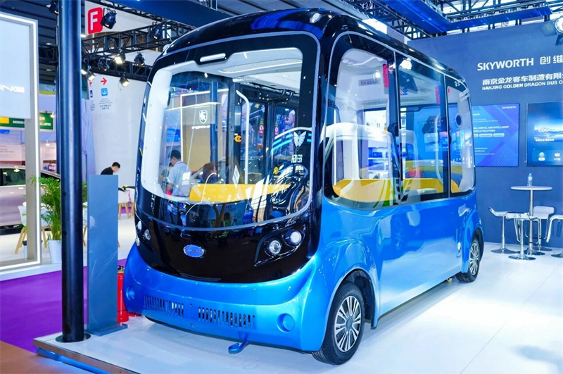 काइवो ग्रुप द्वारा स्वतंत्र रूप से विकसित ब्लू व्हेल L4 स्तर का मानवरहित दर्शनीय स्थल वाहन, अपने बायोमिमेटिक डिजाइन, गैर स्टीयरिंग व्हील इंटेलिजेंट कॉकपिट और अग्रणी L4 स्तर की स्वायत्त ड्राइविंग क्षमताओं के साथ प्रदर्शनी हॉल का फोकस बन गया है। वाहन 5G रिमोट ड्राइविंग, 360 डिग्री पैनोरमिक धारणा और कम गति वाली स्वायत्त ड्राइविंग तकनीक को एकीकृत करता है, जिसे प्रौद्योगिकी पार्क, पर्यटक आकर्षण, हवाई अड्डे के केंद्र और रिसॉर्ट्स जैसे विभिन्न परिदृश्यों में लचीले ढंग से लागू किया जा सकता है। भविष्य में स्मार्ट परिवहन तैयार करने के लिए स्काईवर्थ ऑटोमोटिव के लिए यह एक महत्वपूर्ण मील का पत्थर है।